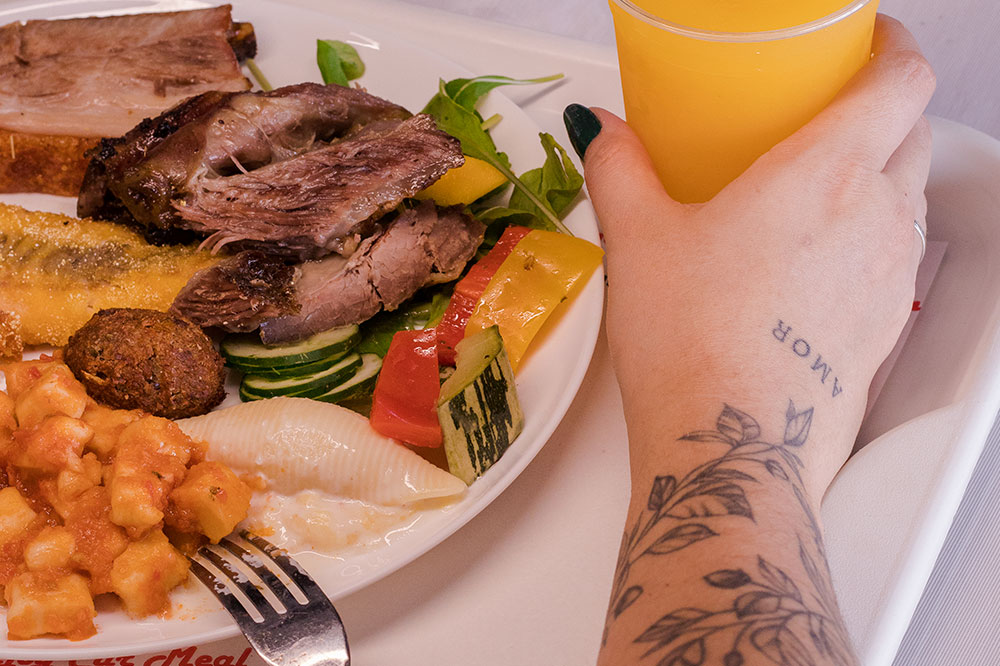 Buffet servido diariamente com variedade em saladas, pratos quentes, carnes preparadas com o melhor tempero e sobremesa.