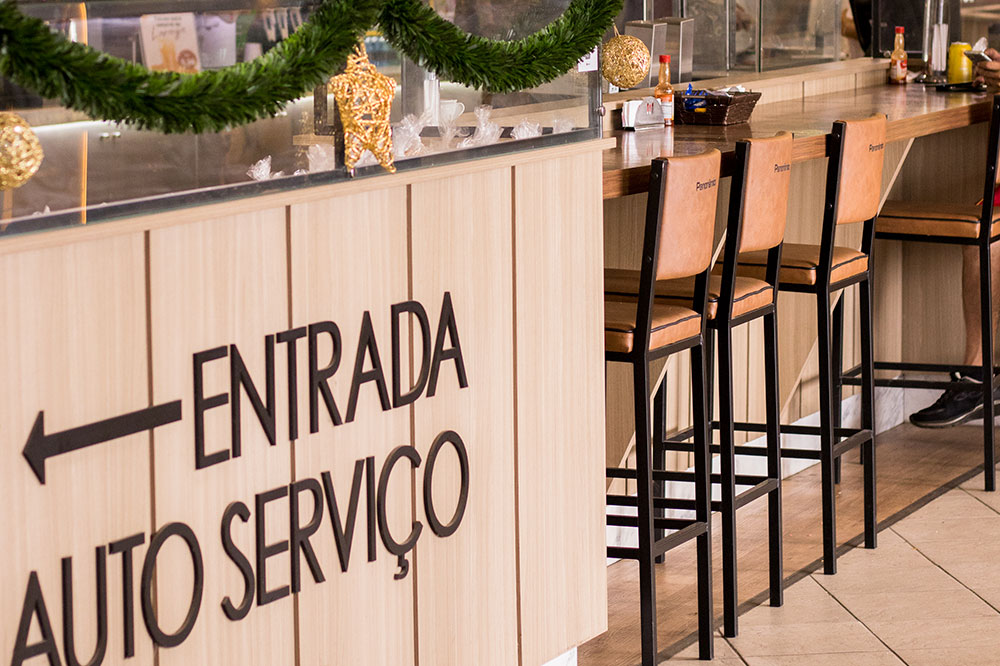 Buffet com carne assada no almoço e jantar, lanchonete e café 24 horas, espaço pet friendly, loja de conveniência e amplo estacionamento anexo ao posto de combustível.